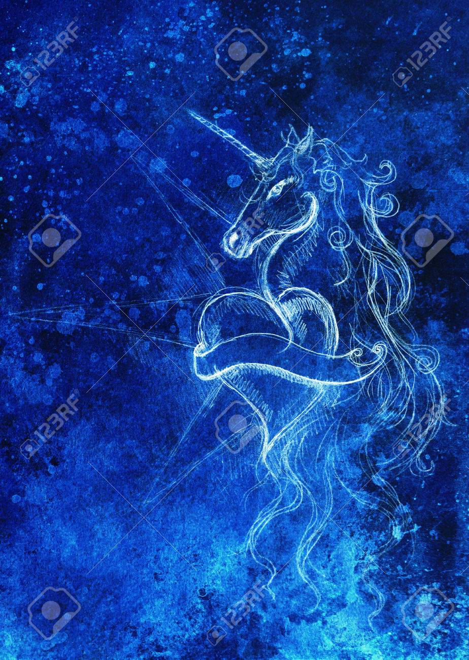 Dessin Linéaire De Licorne Avec Forme De Coeur Sur Fond Abstrait